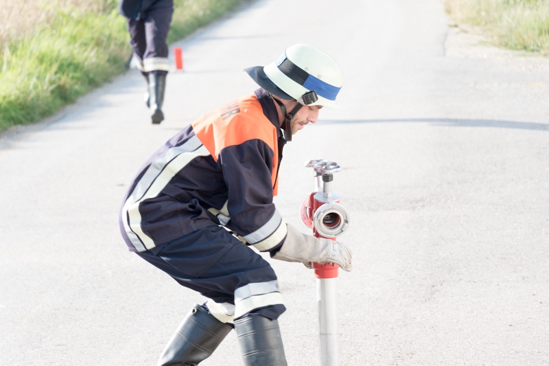 Dabei mussten ein kompletter Löschaufbau mit Wasserentnahme aus einem Unterflurhydranten, das Kuppeln einer Saugleitung mit anschließender Trockensaugprobe, verschiedene Knoten und Stiche, Fahrzeugkunde und das Beantworten von Fragen absolviert werden.