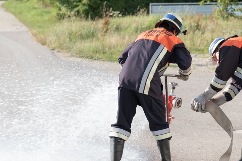 Dabei mussten ein kompletter Löschaufbau mit Wasserentnahme aus einem Unterflurhydranten, das Kuppeln einer Saugleitung mit anschließender Trockensaugprobe, verschiedene Knoten und Stiche, Fahrzeugkunde und das Beantworten von Fragen absolviert werden.