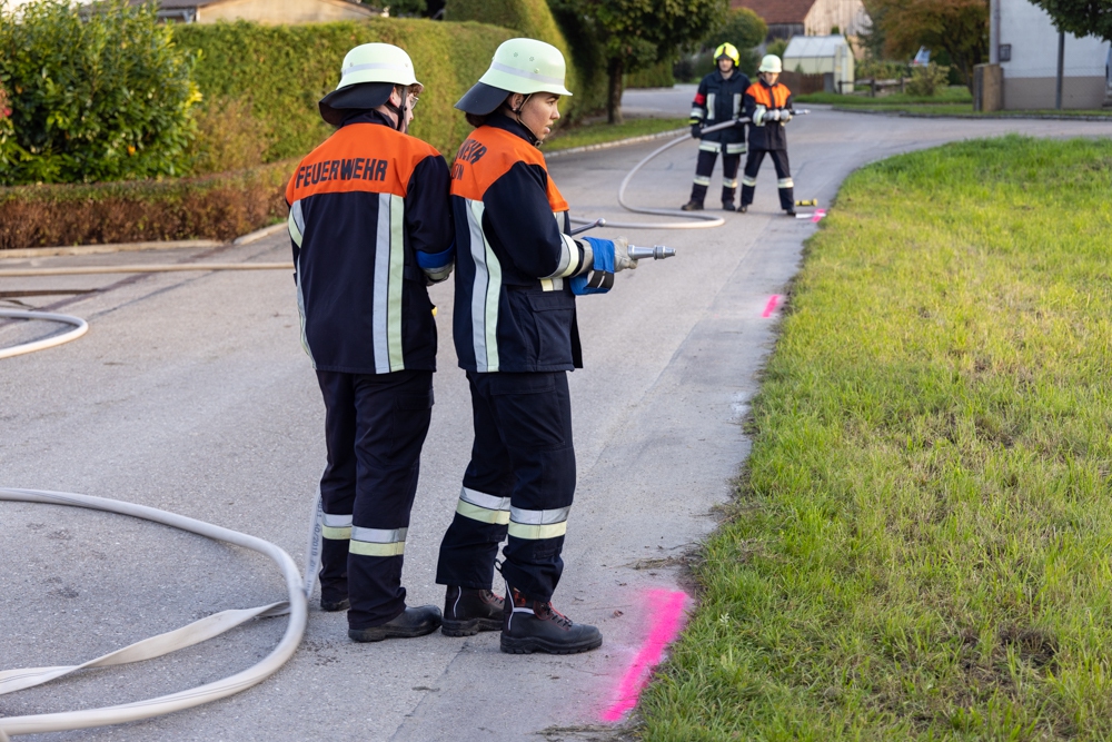 Dabei mussten ein kompletter Löschaufbau mit Wasserentnahme aus einem Unterflurhydranten, das Kuppeln einer Saugleitung mit anschließender Trockensaugprobe, verschiedene Knoten und Stiche, Fahrzeugkunde und das Beantworten von Fragen absolviert werden.
