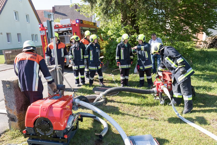 Ein Polizeihubschrauber war angefordert worden. Der Gesuchte konnte aber nicht ausgemacht werden. Da die Zeit drängte, wurden die Freiwilligen Feuerwehren Oberndorf, Mertingen, Feldheim, Niederschönenfeld und Genderkingen hinzugezogen. Ebenso wurden ein Rettungswagen, die Rettungshundestaffel des Roten Kreuzes, die Wasserwacht, die DLRG und die Unterstützungsgruppe für den örtlichen Einsatzleiter angefordert. Insgesamt waren fast 180 Einsatzkräfte vor Ort.