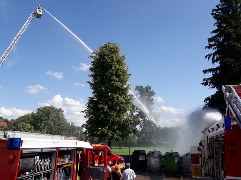 Am Samstag, den 02.06.18, fanden bei strahlendem Sonnenschein zahlreiche Interessierte den Weg zum Feuerwehrgerätehaus in Feldheim, wo sich nicht nur die örtliche Wehr, sondern auch die benachbarte Wehr aus Niederschönenfeld mit ihren Fahrzeugen, Vorführungen und allgemeinen Informationen präsentierten. Unterstützt wurden sie von einigen Kameraden der Feuerwehr aus Rain, die mit ihrem Drehleiter-Fahrzeug vor Ort waren. Komplettiert wurde die Fahrzeug- und Geräteschau schließlich noch von der Werksfeuerwehr von Airbus Helicopters aus Donauwörth, die ihr großes Hilfeleistungslöschgruppenfahrzeug (HLF 20) zur Schau stellten.