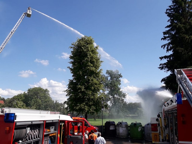 Am Samstag, den 02.06.18, fanden bei strahlendem Sonnenschein zahlreiche Interessierte den Weg zum Feuerwehrgerätehaus in Feldheim, wo sich nicht nur die örtliche Wehr, sondern auch die benachbarte Wehr aus Niederschönenfeld mit ihren Fahrzeugen, Vorführungen und allgemeinen Informationen präsentierten. Unterstützt wurden sie von einigen Kameraden der Feuerwehr aus Rain, die mit ihrem Drehleiter-Fahrzeug vor Ort waren. Komplettiert wurde die Fahrzeug- und Geräteschau schließlich noch von der Werksfeuerwehr von Airbus Helicopters aus Donauwörth, die ihr großes Hilfeleistungslöschgruppenfahrzeug (HLF 20) zur Schau stellten.