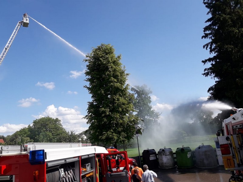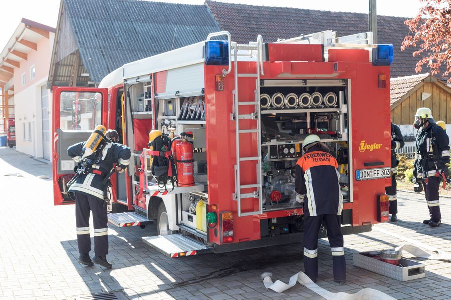 Am Samstag, den 02.06.18, fanden bei strahlendem Sonnenschein zahlreiche Interessierte den Weg zum Feuerwehrgerätehaus in Feldheim, wo sich nicht nur die örtliche Wehr, sondern auch die benachbarte Wehr aus Niederschönenfeld mit ihren Fahrzeugen, Vorführungen und allgemeinen Informationen präsentierten. Unterstützt wurden sie von einigen Kameraden der Feuerwehr aus Rain, die mit ihrem Drehleiter-Fahrzeug vor Ort waren. Komplettiert wurde die Fahrzeug- und Geräteschau schließlich noch von der Werksfeuerwehr von Airbus Helicopters aus Donauwörth, die ihr großes Hilfeleistungslöschgruppenfahrzeug (HLF 20) zur Schau stellten.