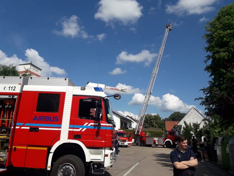 Am Samstag, den 02.06.18, fanden bei strahlendem Sonnenschein zahlreiche Interessierte den Weg zum Feuerwehrgerätehaus in Feldheim, wo sich nicht nur die örtliche Wehr, sondern auch die benachbarte Wehr aus Niederschönenfeld mit ihren Fahrzeugen, Vorführungen und allgemeinen Informationen präsentierten. Unterstützt wurden sie von einigen Kameraden der Feuerwehr aus Rain, die mit ihrem Drehleiter-Fahrzeug vor Ort waren. Komplettiert wurde die Fahrzeug- und Geräteschau schließlich noch von der Werksfeuerwehr von Airbus Helicopters aus Donauwörth, die ihr großes Hilfeleistungslöschgruppenfahrzeug (HLF 20) zur Schau stellten.