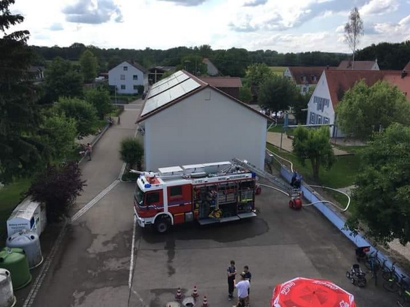 Am Samstag, den 02.06.18, fanden bei strahlendem Sonnenschein zahlreiche Interessierte den Weg zum Feuerwehrgerätehaus in Feldheim, wo sich nicht nur die örtliche Wehr, sondern auch die benachbarte Wehr aus Niederschönenfeld mit ihren Fahrzeugen, Vorführungen und allgemeinen Informationen präsentierten. Unterstützt wurden sie von einigen Kameraden der Feuerwehr aus Rain, die mit ihrem Drehleiter-Fahrzeug vor Ort waren. Komplettiert wurde die Fahrzeug- und Geräteschau schließlich noch von der Werksfeuerwehr von Airbus Helicopters aus Donauwörth, die ihr großes Hilfeleistungslöschgruppenfahrzeug (HLF 20) zur Schau stellten.