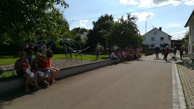 Am Samstag, den 02.06.18, fanden bei strahlendem Sonnenschein zahlreiche Interessierte den Weg zum Feuerwehrgerätehaus in Feldheim, wo sich nicht nur die örtliche Wehr, sondern auch die benachbarte Wehr aus Niederschönenfeld mit ihren Fahrzeugen, Vorführungen und allgemeinen Informationen präsentierten. Unterstützt wurden sie von einigen Kameraden der Feuerwehr aus Rain, die mit ihrem Drehleiter-Fahrzeug vor Ort waren. Komplettiert wurde die Fahrzeug- und Geräteschau schließlich noch von der Werksfeuerwehr von Airbus Helicopters aus Donauwörth, die ihr großes Hilfeleistungslöschgruppenfahrzeug (HLF 20) zur Schau stellten.