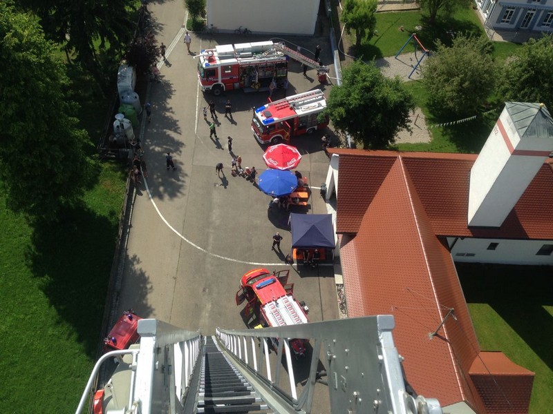 Dabei ließ sich so mancher Besucher die Chance nicht entgehen, einmal von der Drehleiter aus einen Blick über Feldheim werfen zu können.