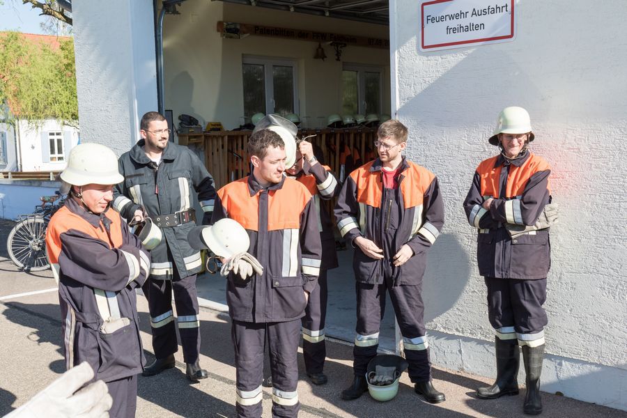 Nach einer kurzen Begrüßung und Einsatzerläuterung des Feldheimer Kommandanten Matthias Kastenhofer sprach auch noch der 1. Bürgermeister Peter Mahl zu den anwesenden Kameraden. Beide lobten die Einsatzbereitschaft und gute Zusammenarbeit innerhalb der drei Feuerwehren. Zudem bedankten sie sich bei der Schreinerei Schmid für die Bereitstellung des Übungsobjekts und für die geopferte Zeit aller teilnehmenden Personen, was nicht unbedingt als selbstverständlich angesehen werden könne, schließlich war es nicht nur ein Sonntagvormittag, sondern auch noch Muttertag.