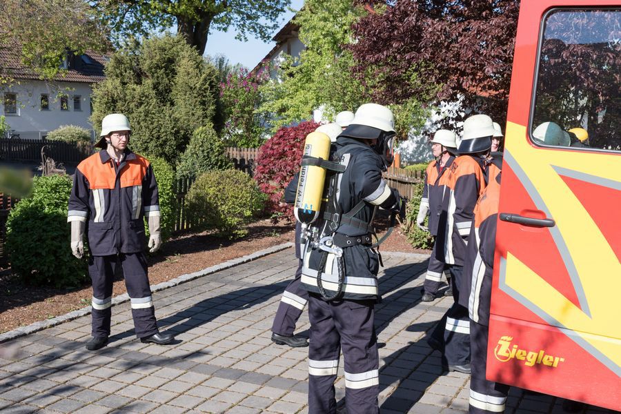 Nach einer kurzen Begrüßung und Einsatzerläuterung des Feldheimer Kommandanten Matthias Kastenhofer sprach auch noch der 1. Bürgermeister Peter Mahl zu den anwesenden Kameraden. Beide lobten die Einsatzbereitschaft und gute Zusammenarbeit innerhalb der drei Feuerwehren. Zudem bedankten sie sich bei der Schreinerei Schmid für die Bereitstellung des Übungsobjekts und für die geopferte Zeit aller teilnehmenden Personen, was nicht unbedingt als selbstverständlich angesehen werden könne, schließlich war es nicht nur ein Sonntagvormittag, sondern auch noch Muttertag.