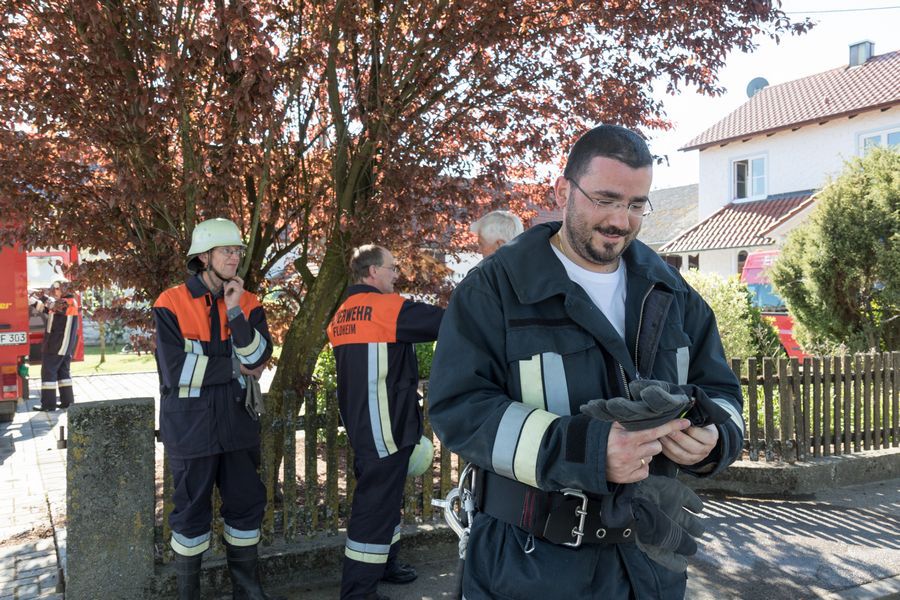 Nach einer kurzen Begrüßung und Einsatzerläuterung des Feldheimer Kommandanten Matthias Kastenhofer sprach auch noch der 1. Bürgermeister Peter Mahl zu den anwesenden Kameraden. Beide lobten die Einsatzbereitschaft und gute Zusammenarbeit innerhalb der drei Feuerwehren. Zudem bedankten sie sich bei der Schreinerei Schmid für die Bereitstellung des Übungsobjekts und für die geopferte Zeit aller teilnehmenden Personen, was nicht unbedingt als selbstverständlich angesehen werden könne, schließlich war es nicht nur ein Sonntagvormittag, sondern auch noch Muttertag.