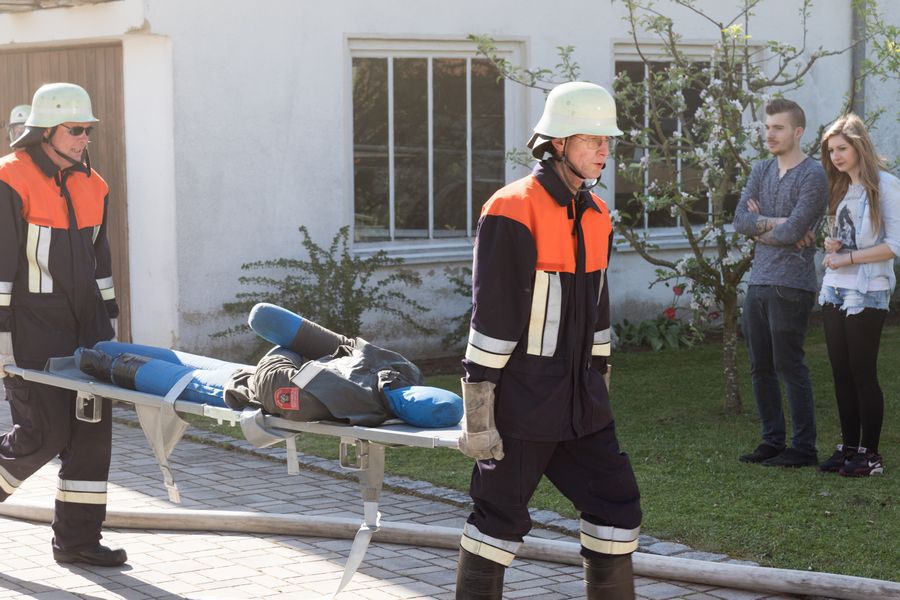 Den Abschluss der drei neu aufgebauten Frühjahrsübungen bildete eine Einsatzübung bei der Schreinerei Schmid in Feldheim, die zusammen mit den Wehren aus Niederschönenfeld und Rain am Lech am Sonntag, den 08.05.2016 durchgeführt wurde. Dabei konnte das neu erlernte bzw. aufgefrischte Wissen gleich in die Praxis umgesetzt werden. Den insgesamt 50 Feuerwehrleuten bot sich dabei ein breites Einsatzspektrum, welches zielstrebig und gekonnt abgearbeitet wurde.
