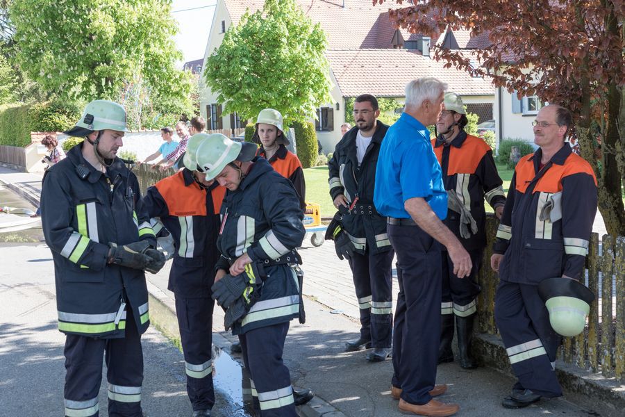 Den Abschluss der drei neu aufgebauten Frühjahrsübungen bildete eine Einsatzübung bei der Schreinerei Schmid in Feldheim, die zusammen mit den Wehren aus Niederschönenfeld und Rain am Lech am Sonntag, den 08.05.2016 durchgeführt wurde. Dabei konnte das neu erlernte bzw. aufgefrischte Wissen gleich in die Praxis umgesetzt werden. Den insgesamt 50 Feuerwehrleuten bot sich dabei ein breites Einsatzspektrum, welches zielstrebig und gekonnt abgearbeitet wurde.