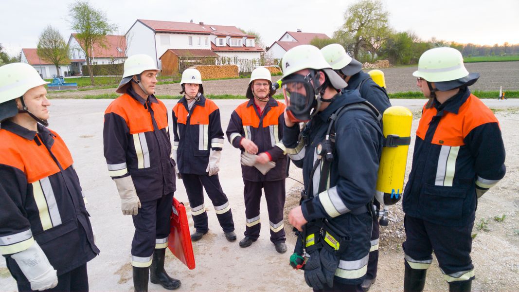 Nachdem die Feldheimer Feuerwehr als erstes am Einsatzort eingetroffen ist, sah die Übung vor, die stark verrauchte Schreinerei bzw. Lackierkammer nach mindestens zwei vermissten Personen zu durchsuchen. So rüsteten sich zwei Atemschutzgeräteträger aus und gingen in das Gebäude. Mit Hilfe des Überdrucklüfters wurde der Rauch aus der Werkstatt gedrängt und beide vermissten Personen schnell und sicher gerettet. Die in der Zwischenzeit eingetroffenen Kameraden aus Niederschönenfeld und Rain machten sich zusammen mit den Feldheimern auf, die Wasserversorgung aufzubauen und den Außenangriff vorzunehmen. Zudem wurde die Drehleiter eingesetzt. Ziel der Übung war es auch, die Ergiebigkeit der Brunnen zu testen, um für den Ernstfall wichtige Erkenntnisse daraus abzuleiten.