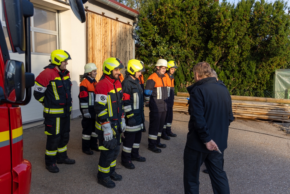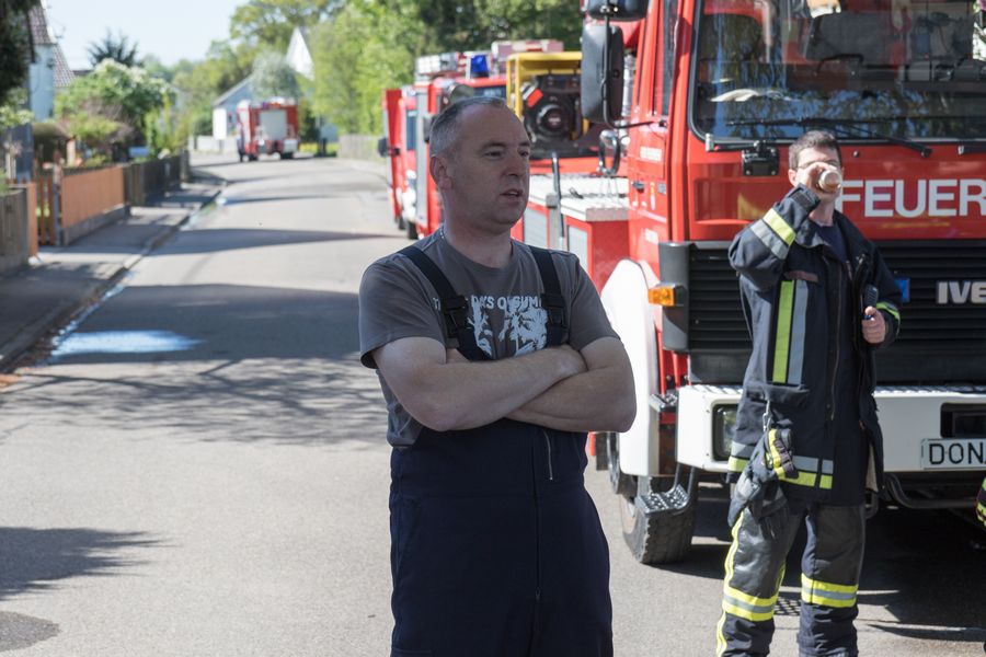 Nach einer kurzen Begrüßung und Einsatzerläuterung des Feldheimer Kommandanten Matthias Kastenhofer sprach auch noch der 1. Bürgermeister Peter Mahl zu den anwesenden Kameraden. Beide lobten die Einsatzbereitschaft und gute Zusammenarbeit innerhalb der drei Feuerwehren. Zudem bedankten sie sich bei der Schreinerei Schmid für die Bereitstellung des Übungsobjekts und für die geopferte Zeit aller teilnehmenden Personen, was nicht unbedingt als selbstverständlich angesehen werden könne, schließlich war es nicht nur ein Sonntagvormittag, sondern auch noch Muttertag.