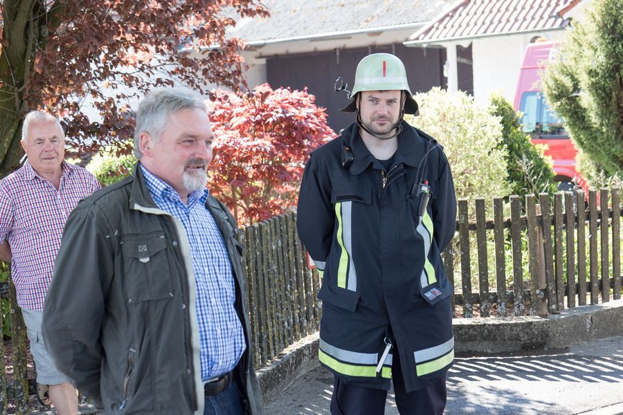 Nach einer kurzen Begrüßung und Einsatzerläuterung des Feldheimer Kommandanten Matthias Kastenhofer sprach auch noch der 1. Bürgermeister Peter Mahl zu den anwesenden Kameraden. Beide lobten die Einsatzbereitschaft und gute Zusammenarbeit innerhalb der drei Feuerwehren. Zudem bedankten sie sich bei der Schreinerei Schmid für die Bereitstellung des Übungsobjekts und für die geopferte Zeit aller teilnehmenden Personen, was nicht unbedingt als selbstverständlich angesehen werden könne, schließlich war es nicht nur ein Sonntagvormittag, sondern auch noch Muttertag.