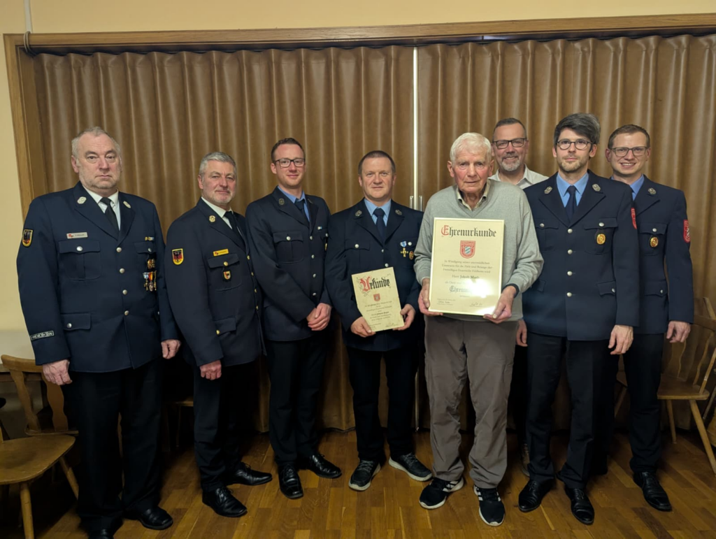 Eine ganz besondere Ehre wurde im Anschluss Jakob Marb zuteil, als er auf Vorschlag der Vorstandschaft zum Ehrenmitglied der Feuerwehr Feldheim berufen wurde. Jakob Marb kann auf über 40 Jahre im aktiven Dienst zurückblicken und ist seither als passives Mitglied immer noch aktiv am Vereinsleben beteiligt.